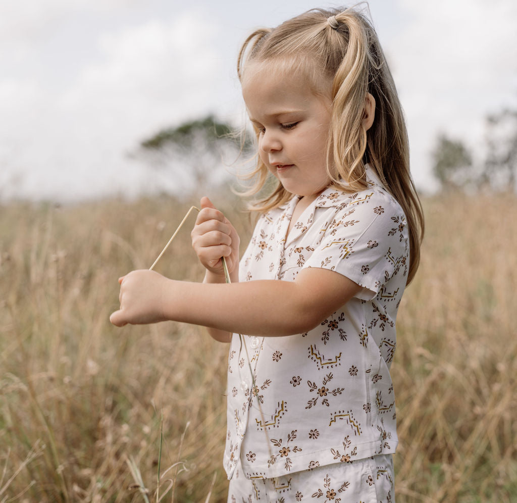 The Button down shirt met with an elastic waistband on the shorts was designed to keep your little one comfortable all day and night long.